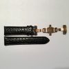 Black Crocodile Pattern Leather 24mm Strap with Stainless Steel Deployment Buckle