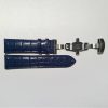 Blue Crocodile Pattern Leather 24mm Strap with Stainless Steel Deployment Buckle